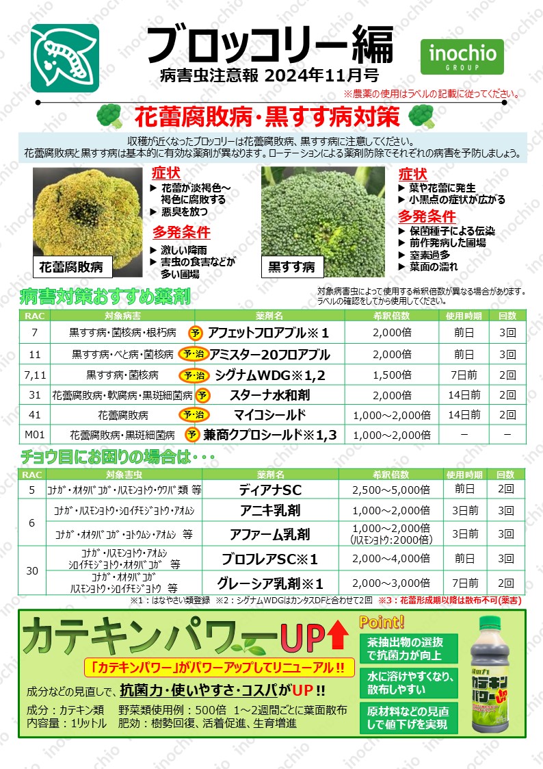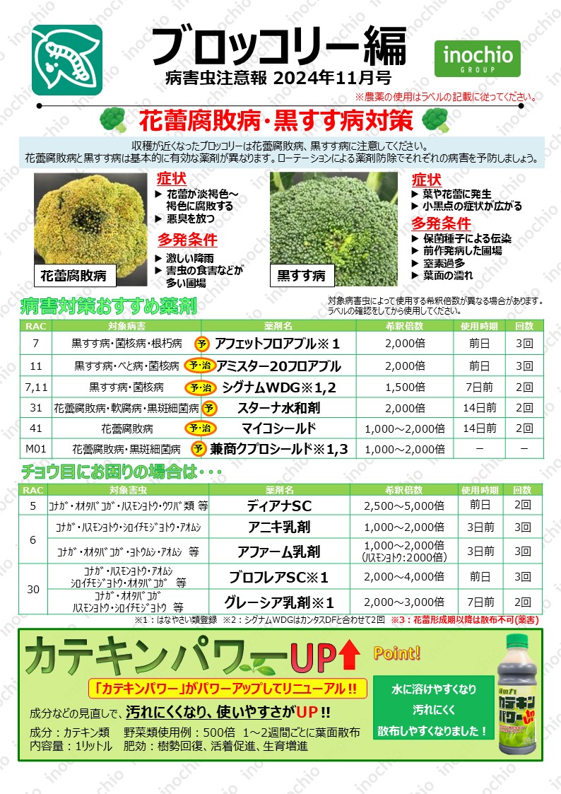 【2024年11月】ブロッコリー編「収穫期ブロッコリーの病害対策:花蕾腐敗病・黒すす病に注意」