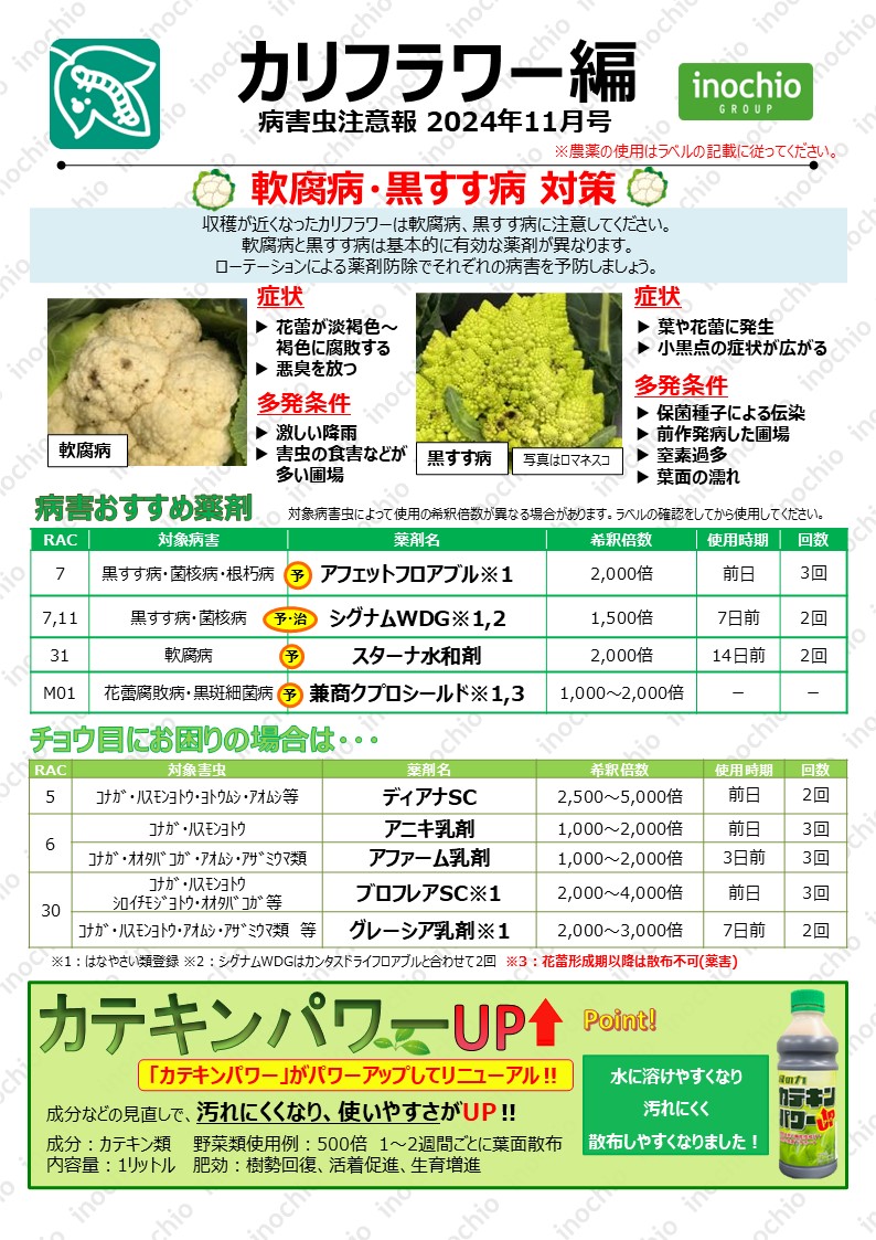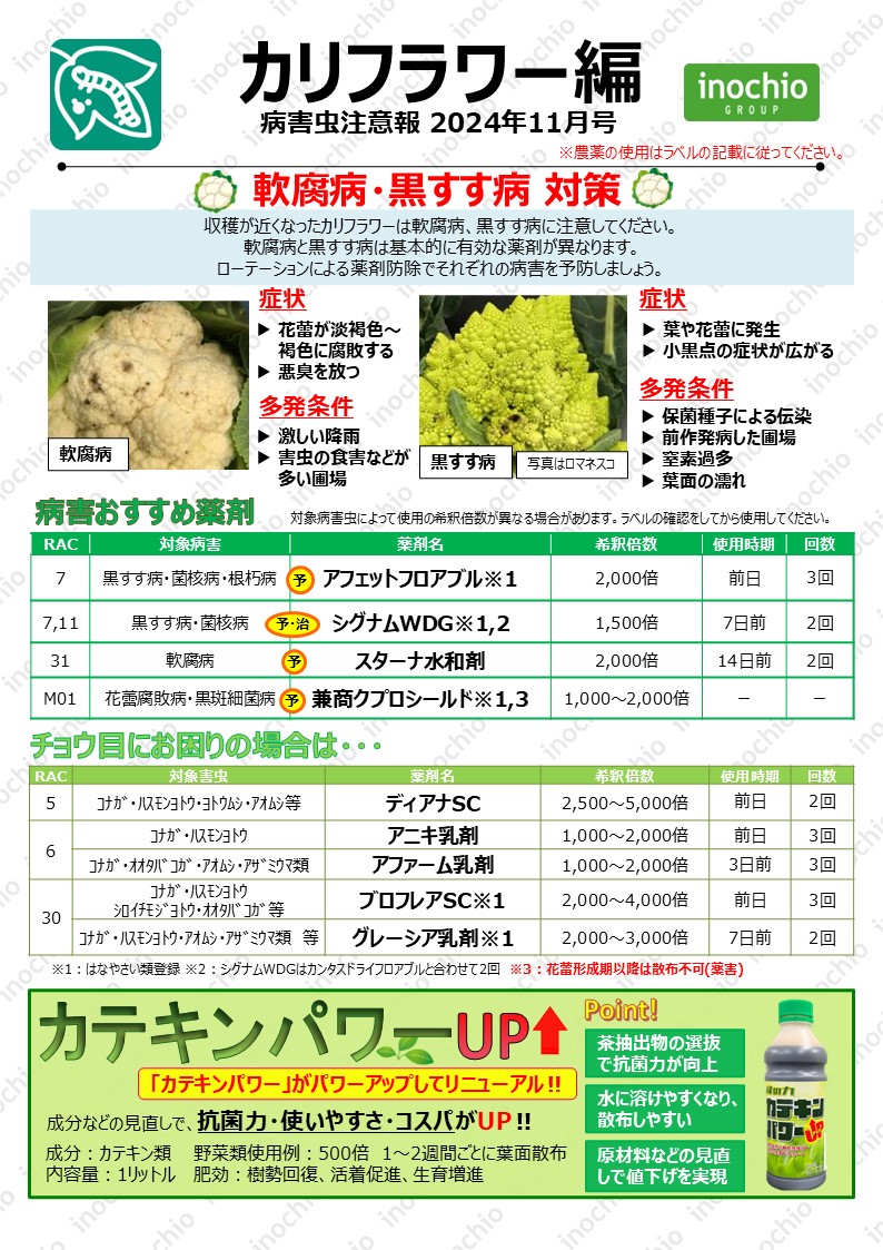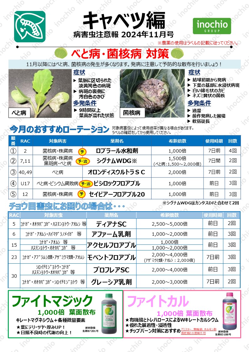 【2024年11月】キャベツ編「べと病・菌核病のリスク増加!予防散布を徹底しましょう」