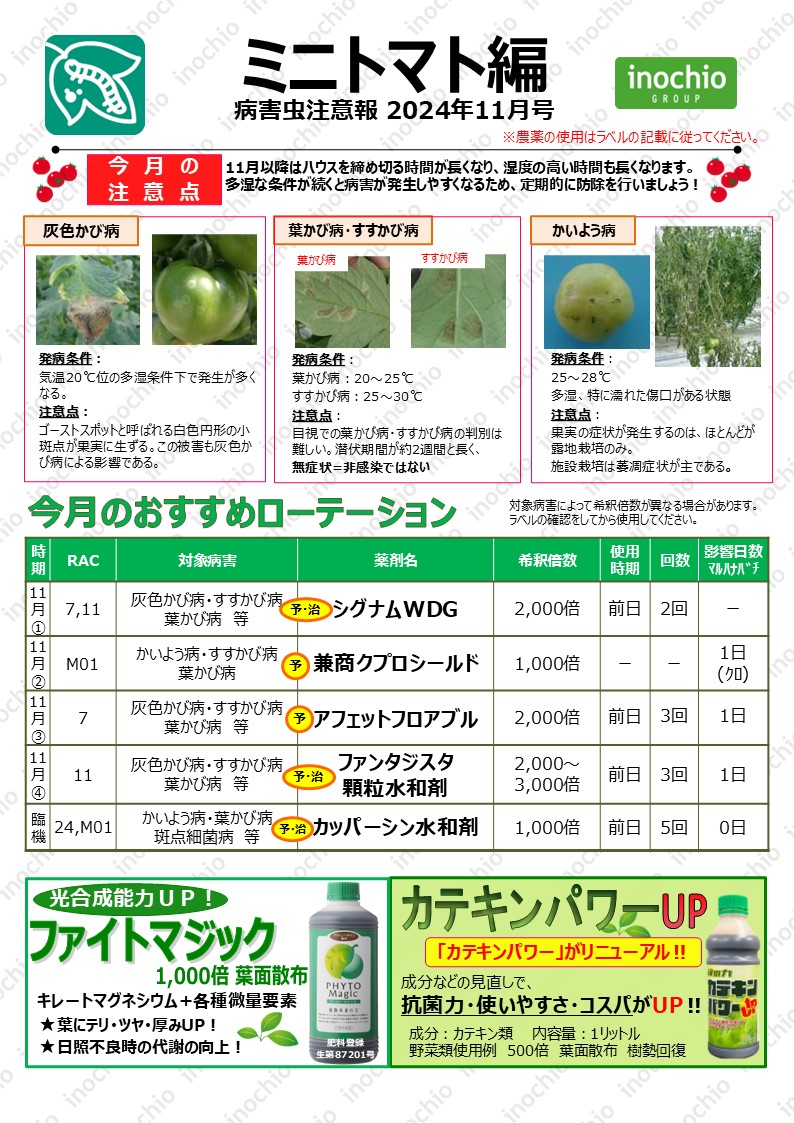 【2024年11月】トマト編「病害発生を防ぐ!多湿環境での定期防除のすすめ」