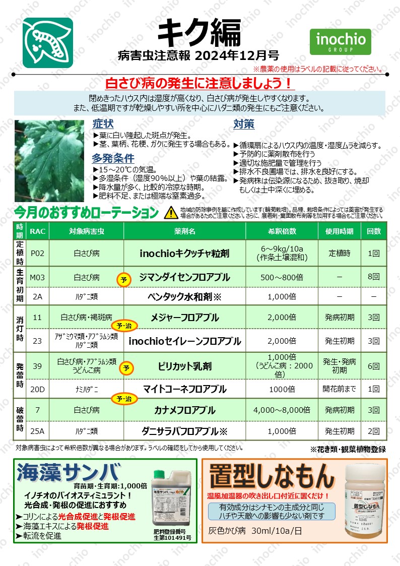 【2024年12月】キク編「白さび病の発生に注意しましょう!」