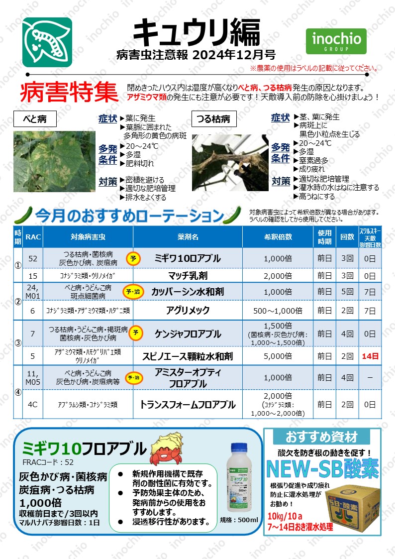 【2024年12月】キュウリ編「病害特集~べと病・つる枯病」