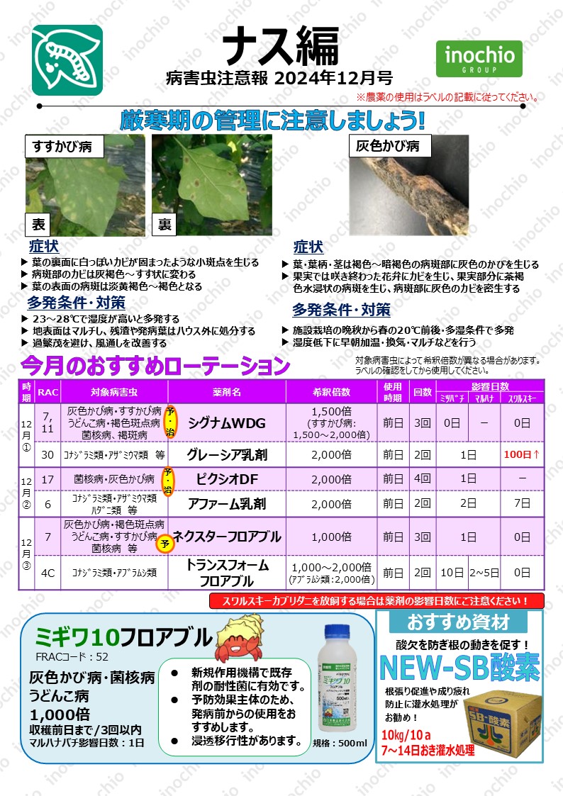 【2024年12月】ナス編「極寒期の管理に注意しましょう」