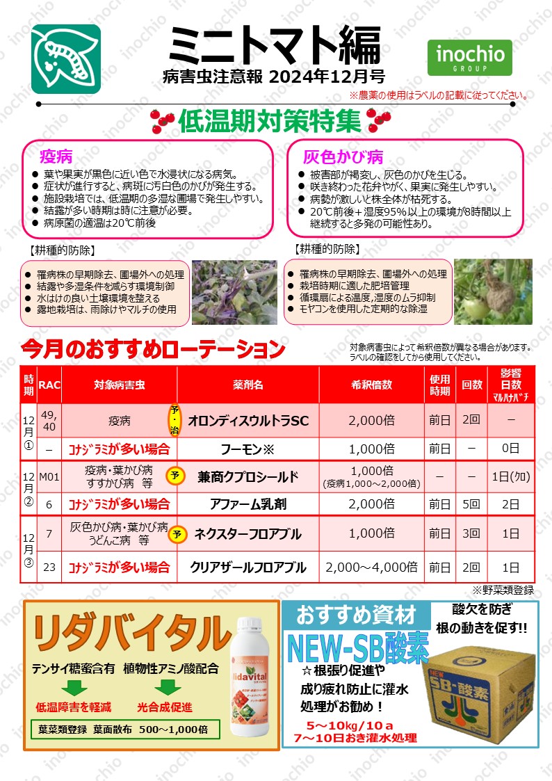 【2024年12月】ミニトマト編「低温期対策特集」
