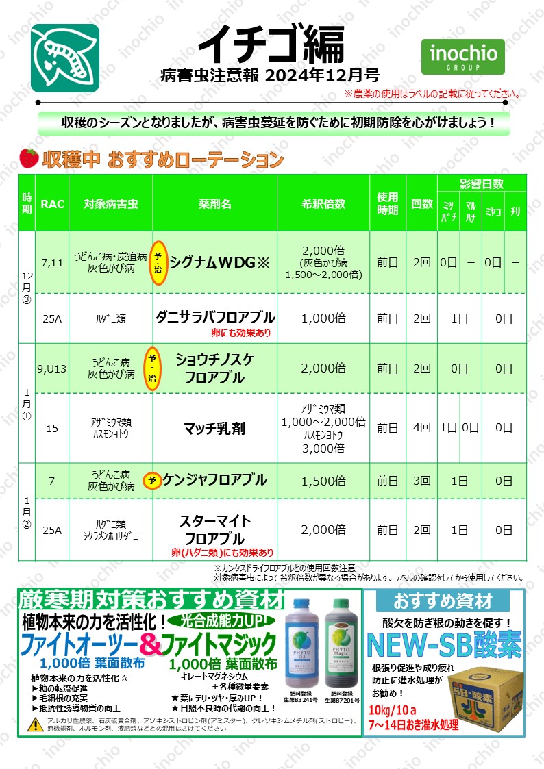 【2024年12月】イチゴ編「収穫シーズン。病害虫の初期予防を心がけよう」