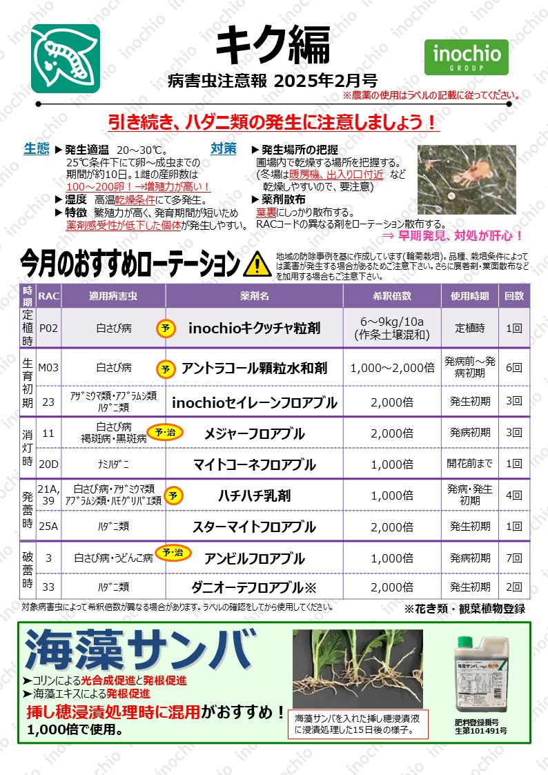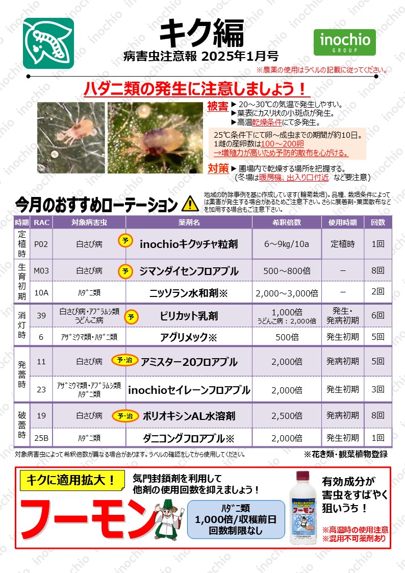 【2025年2月】キク編「2月もハダニ類の発生に注意しましょう!」