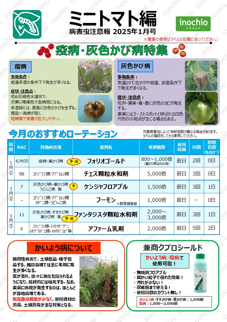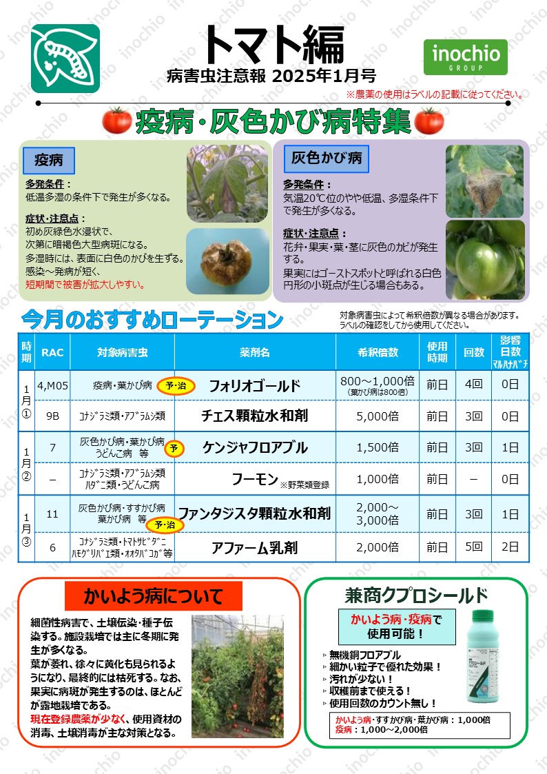 【2025年1月】トマト編「疫病・灰色かび病特集」